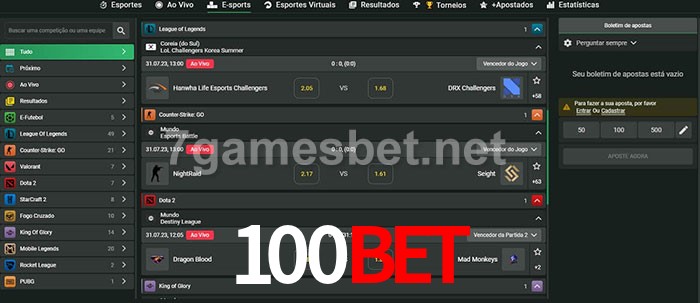 O 100bet oferece uma grande seleção de opções de apostas em e-sports com probabilidades competitivas